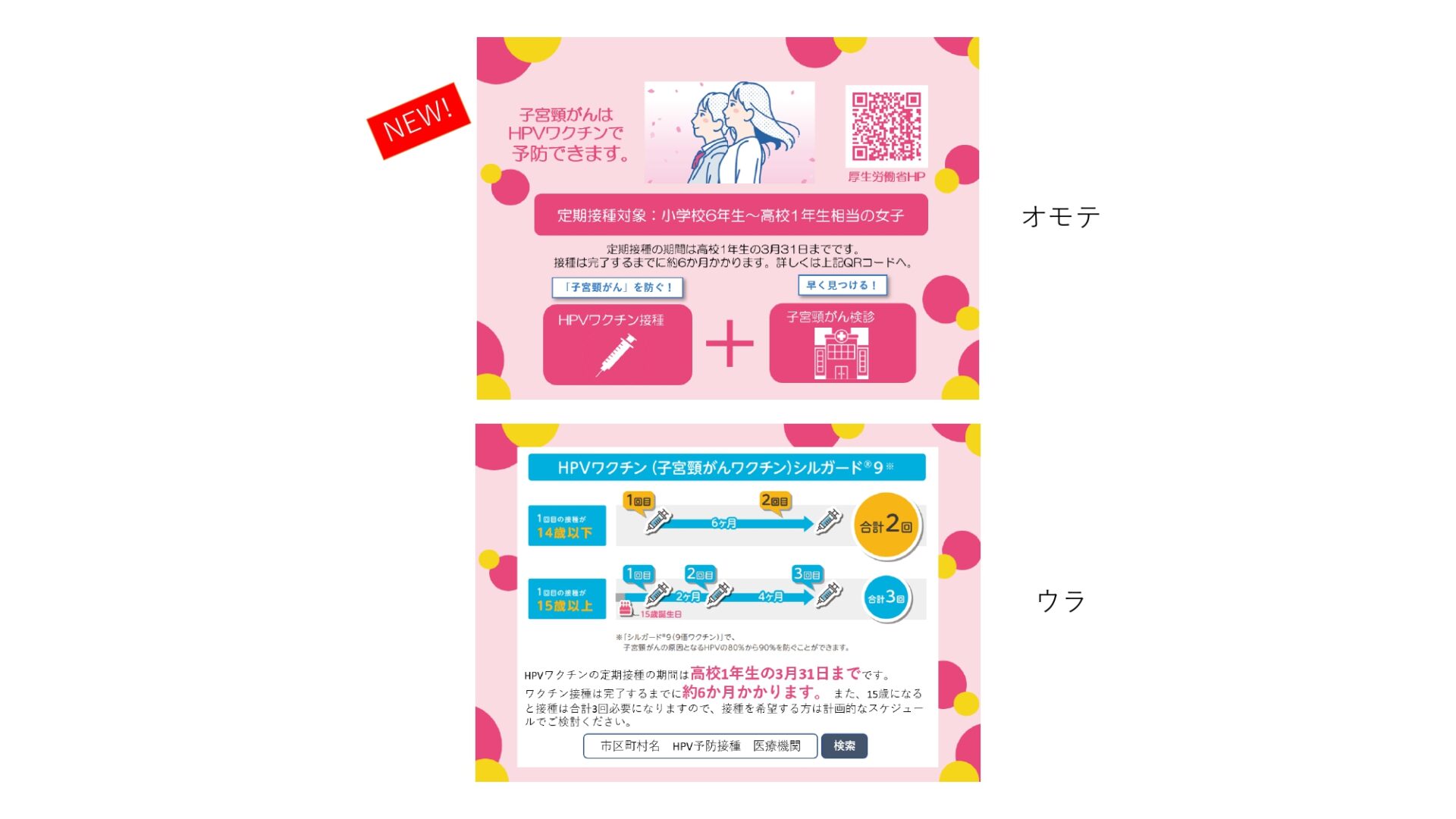 定期接種対象者向けの名刺サイズ・HPVカードを作成いたしました。