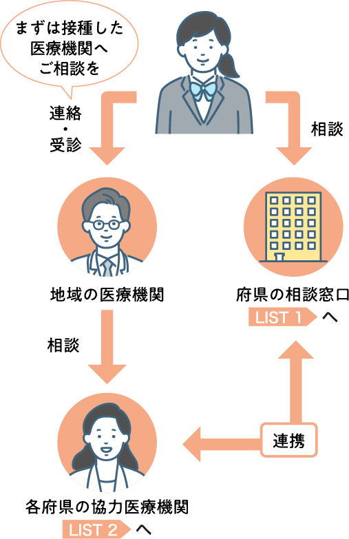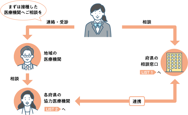 協力医療機関への受診は、接種医療機関やかかりつけの医療機関にご相談ください。
